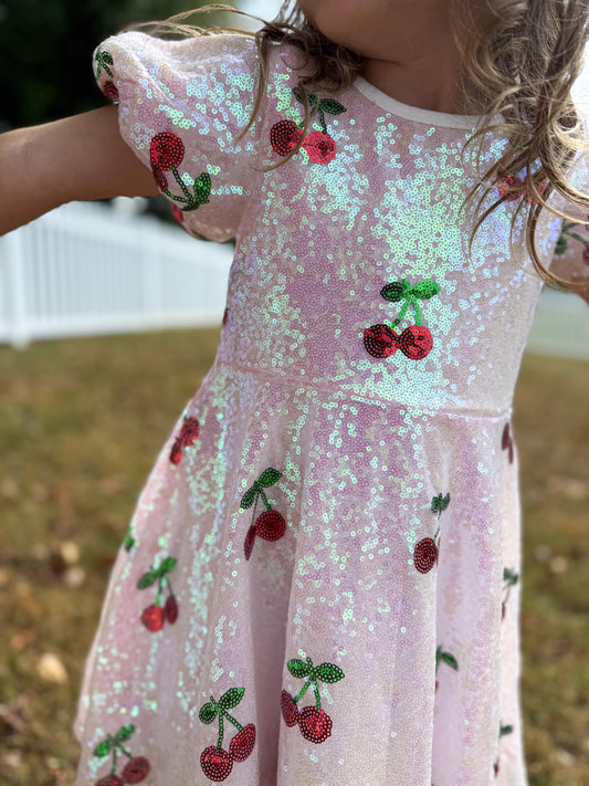 Sweet Cherry Sequins Dress in Pink- Girls (2-7)