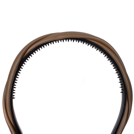 Vegan Leather Twist Headband in Brown- Accessories