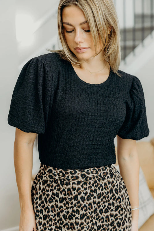 Puff Sleeve Top in Black- Misses (XS-XL)