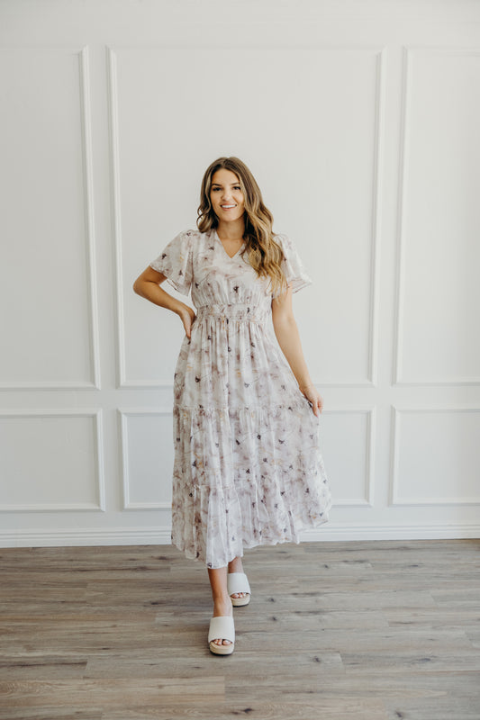 Greta Dress in Lavender Lotus- Misses and Plus (M,XL,3X)