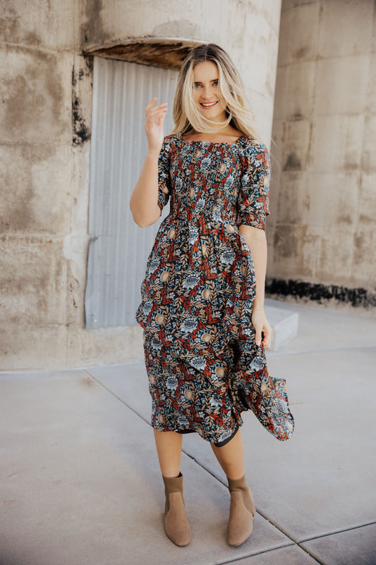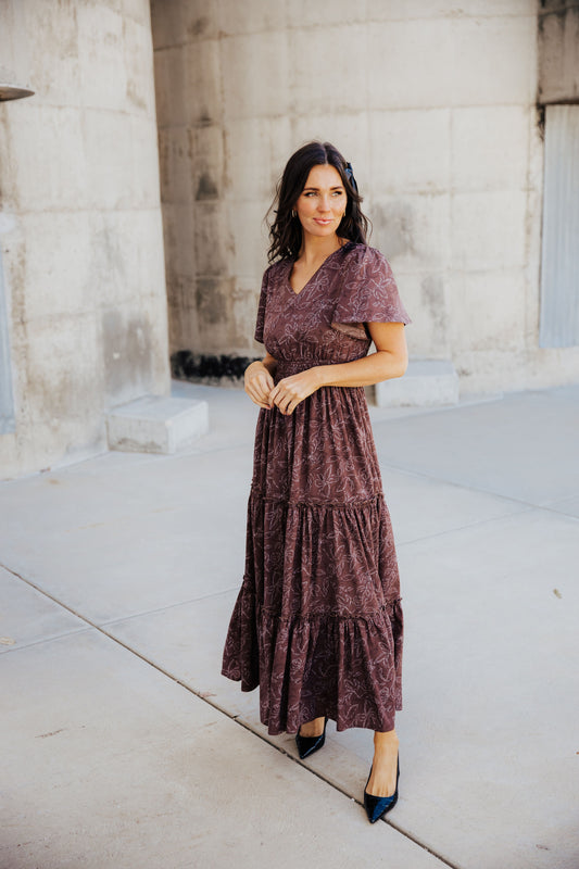 Eden Dress in Cocoa Ditsy- Misses, Plus, and Extended Plus (S, L-4X)
