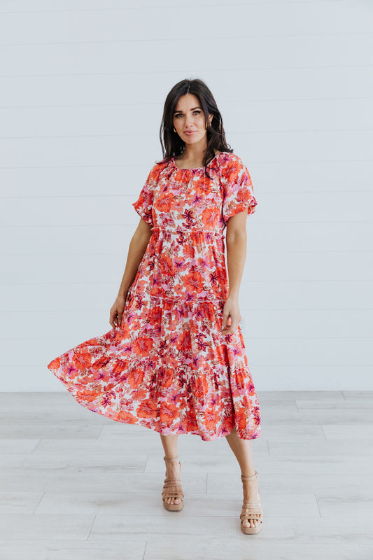 The Sabrina Dress in Papaya Rose- Misses & Plus (S-4X)