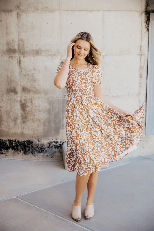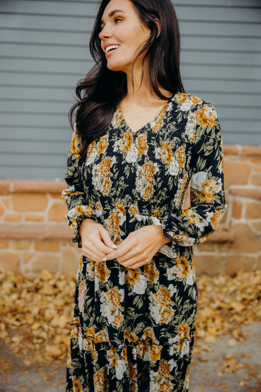 Tristin Dress in Sunshine Floral- Misses & Plus (S,L-4X)