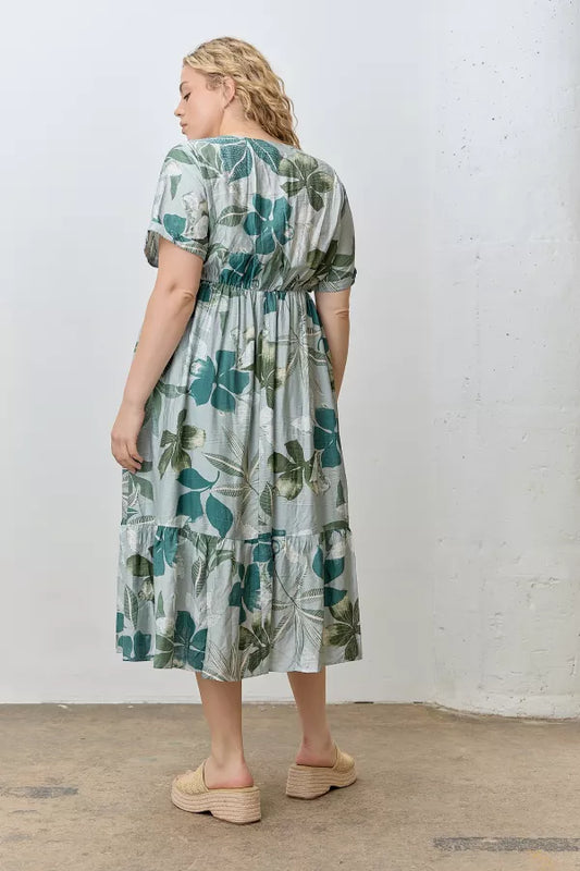 Solea Dress in Sage Multi- Plus (1X-3X)