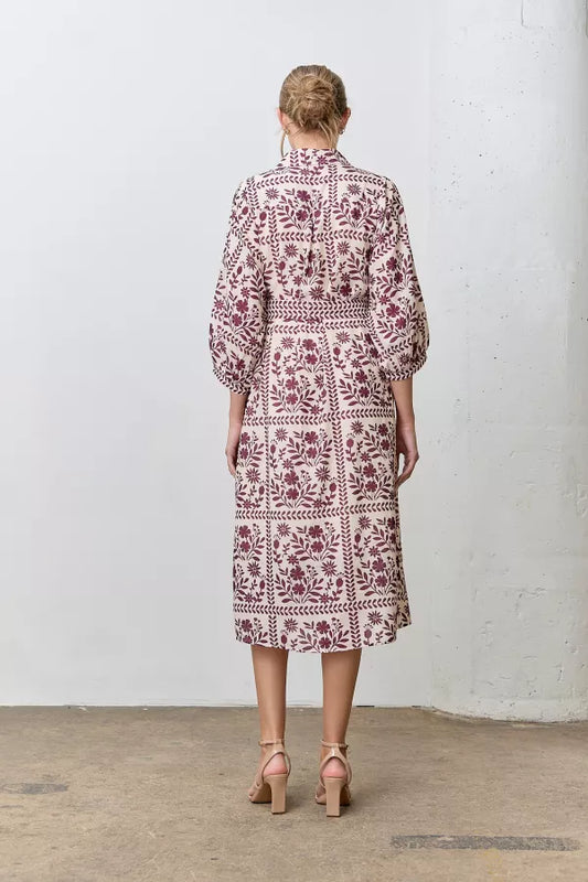 Elara Dress in Cream/Wine- Misses and Plus (S-3X)