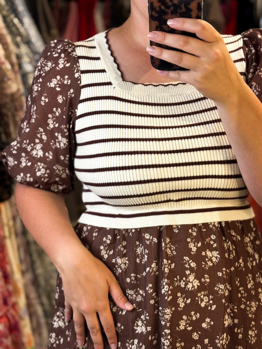 Briony Dress in Mocha/Cream- Misses (S-XL)