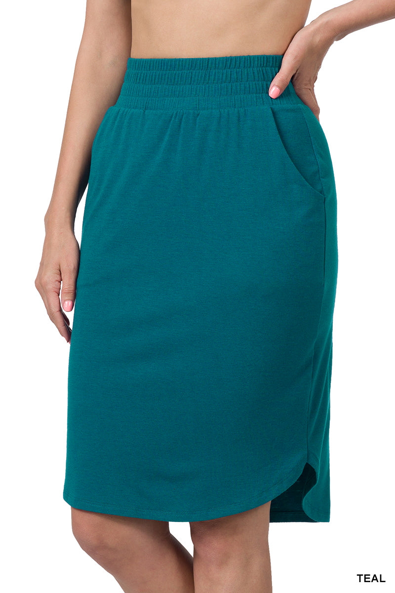 ELASTIC WAIST TULIP HEM SKIRT WITH SIDE POCKETS