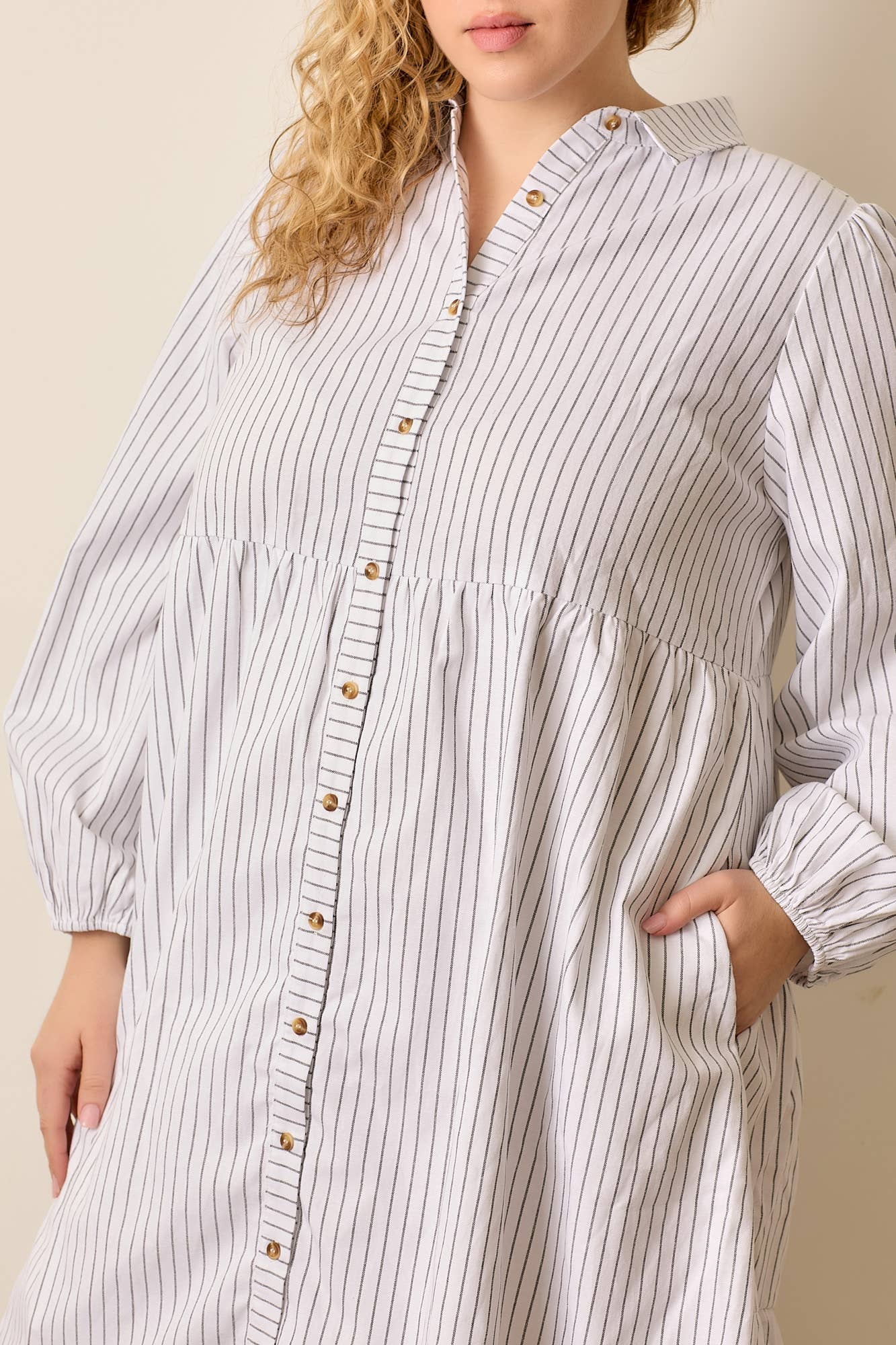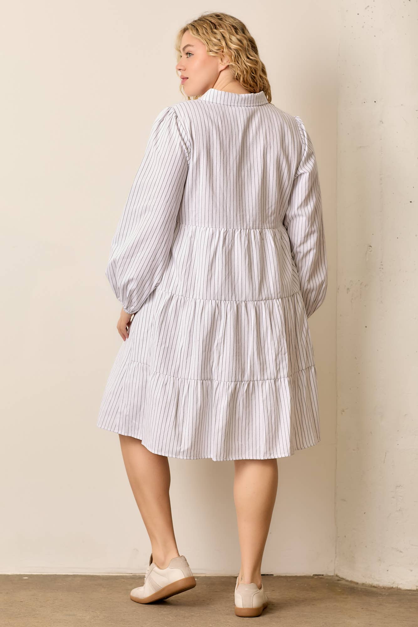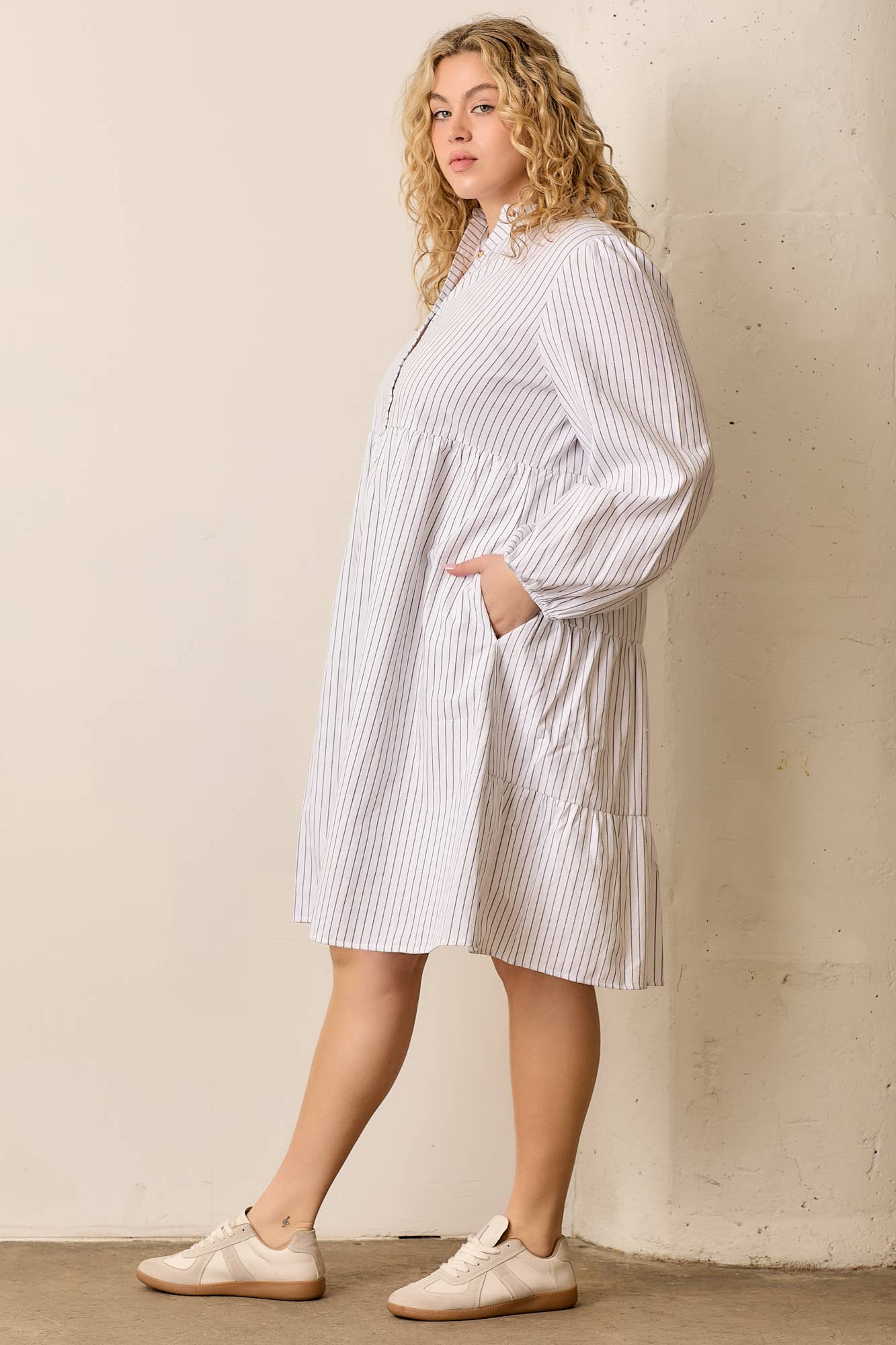 Kini Dress in White Stripe- Misses and Plus (S-XL,2X,3X)