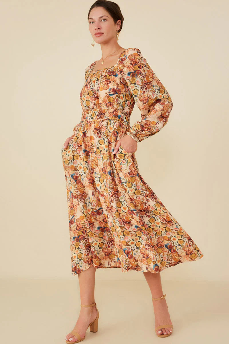 A soft and romantic favorite for the season, The Lylah Dress in Taupe brings all the charm of autumn blooms with a timeless silhouette you’ll reach for again and again. Featuring a square neckline, gently gathered waist, and long sleeves with elastic cuffs — this floral beauty flows gracefully with every step. Complete with pockets and a comfortable back elastic waistline, it’s perfect for church, brunch, or that fall family photo.