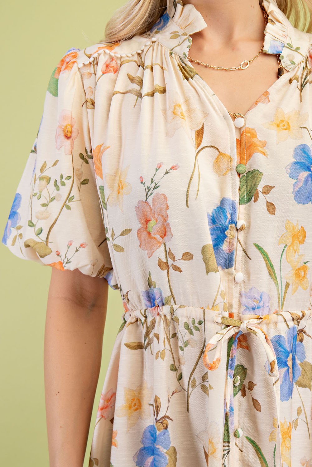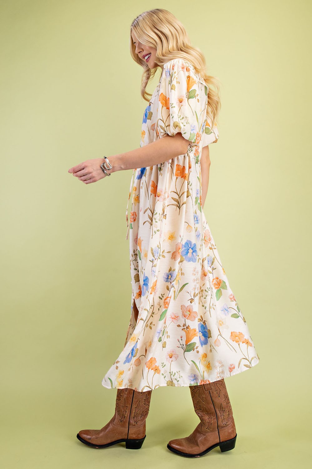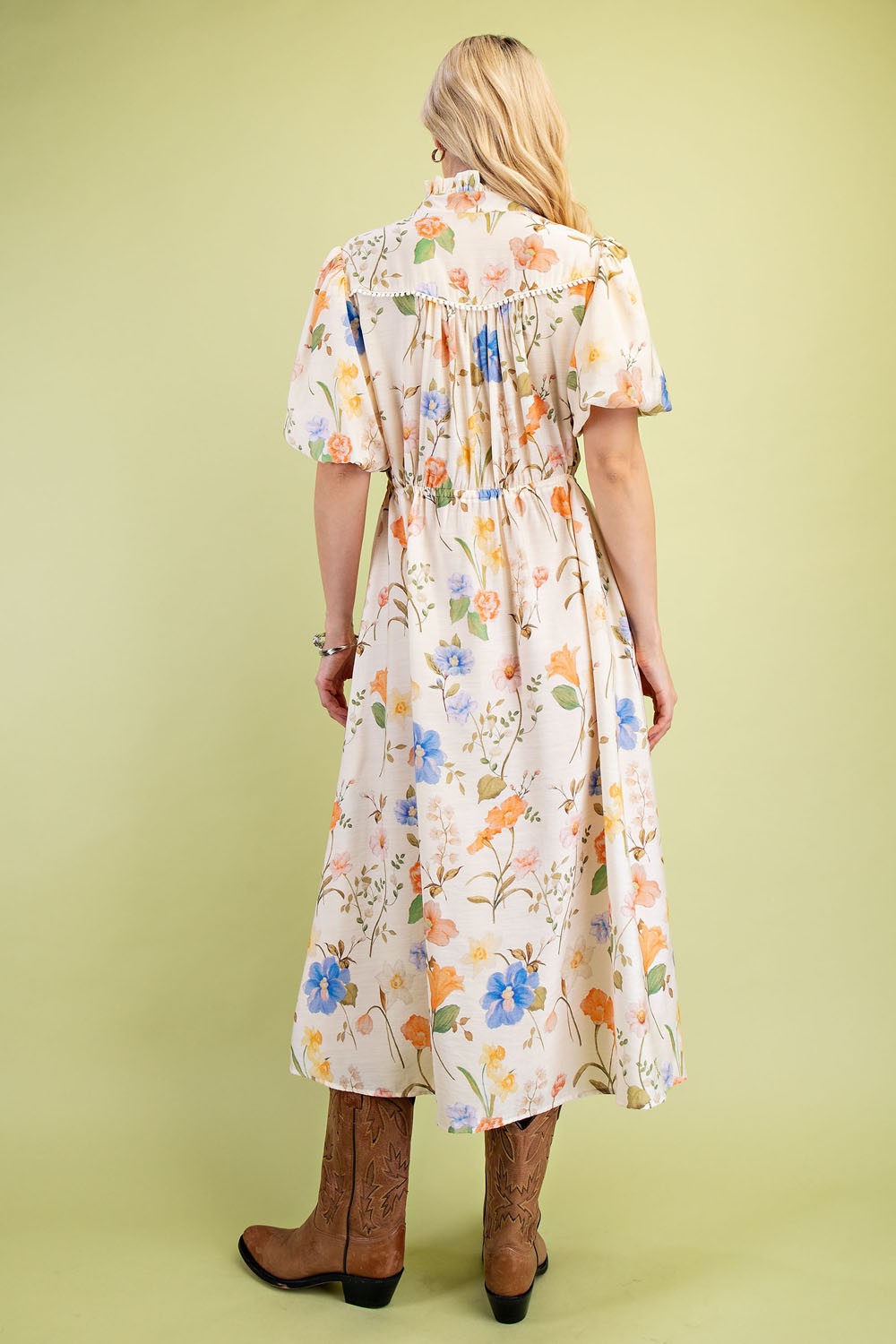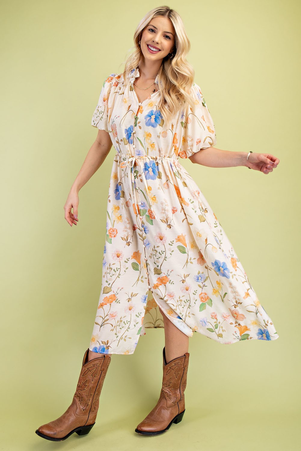 Floral Midi Dress with a Waist Tie and Trim Details