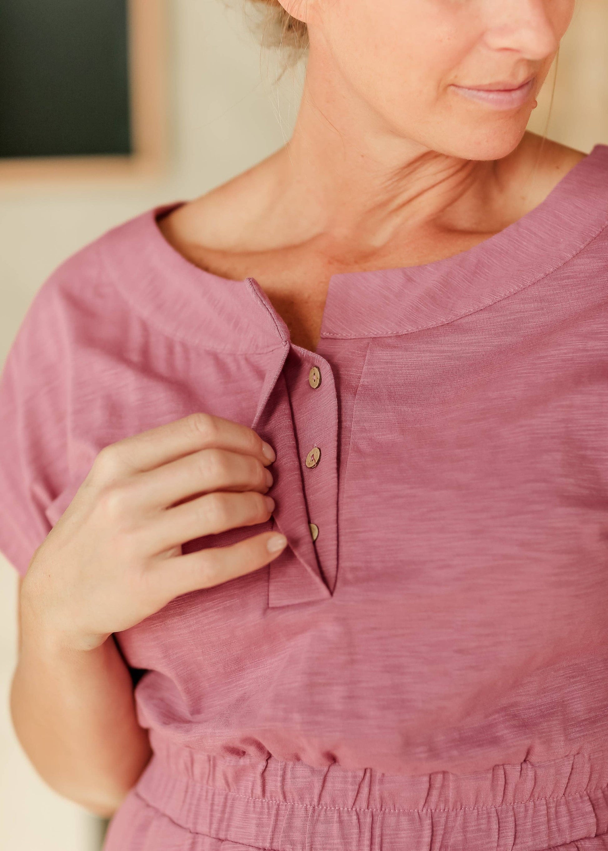 Made with a lightweight, breathable fabric, this dress will keep you cool and comfortable all day long. The dolman top adds a modern touch to the classic maxi dress silhouette, and it has buttons making it nursing friendly! Featuring a comfortable cinched waist, and side pockets so you can carry your essentials with ease. The feminine fit of this dress is designed for a flattering and modest silhouette. Whether you're running errands, on vacation, or simply enjoying a day out, this dress is perfect for any occasion!